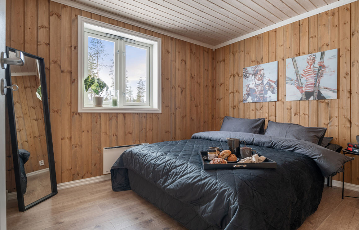 Ny hyttemodell med 4 soverom, stort bad, toalettrom, åpen kjøkken- og stueløsning, tv-stue, utvendig bod, overbygd inngangsparti, stor terrasse på to sider.