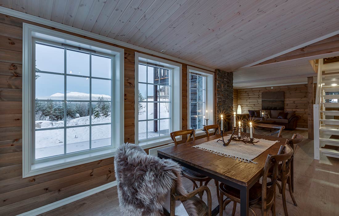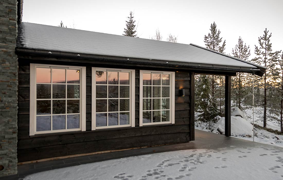 Alle vinduer og terrassedører er fra Natre, Norskprodusert. Inngangsdør «Gausdal» er fra Harmonie.