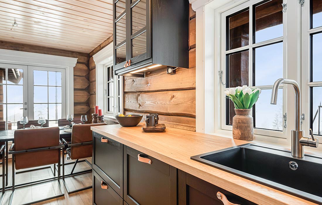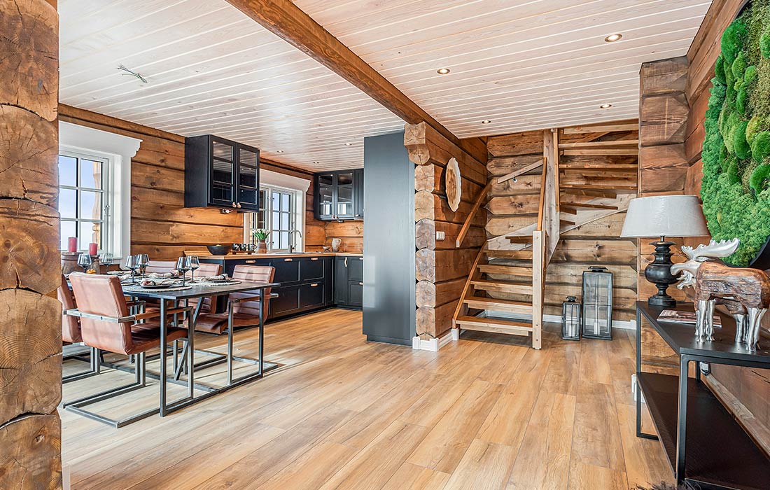 En fantastisk og romslig tømmerhytte med 6 soverom og 3 bad.