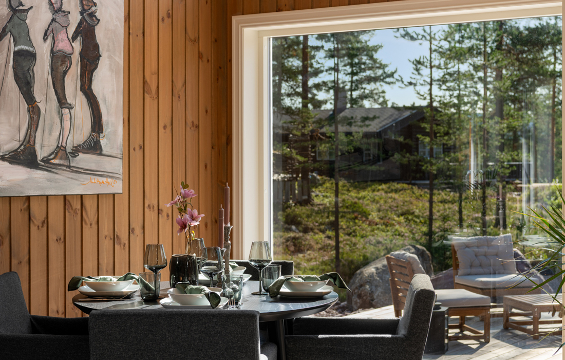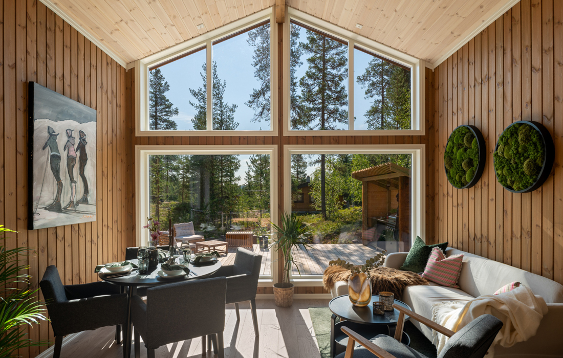 Store vinduer som slipper lys og varme inn.