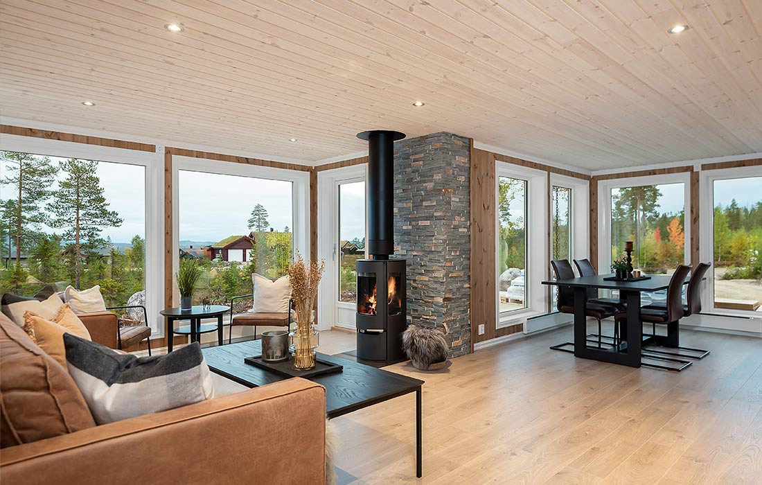 Vår nyeste hyttemodell med 4 soverom, 2 bad, 2 stuer og innvendig bod/teknisk rom.